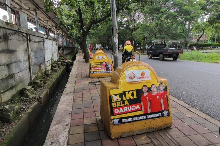 Berdasarkan pantauan iDoPress di lokasi, Kamis (9/4/2026), terdapat lima barrier beton bewarna kuning yang dipasang di tengah-tengah trotoar.